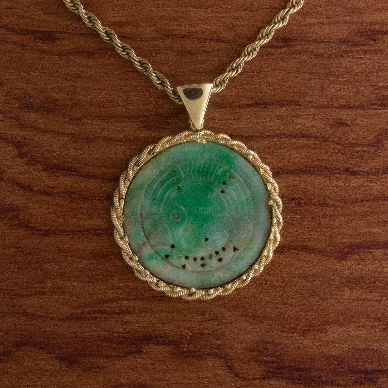 VINTAGE Jade Phoenix Pendant with Rope Chain and Rope Bezel